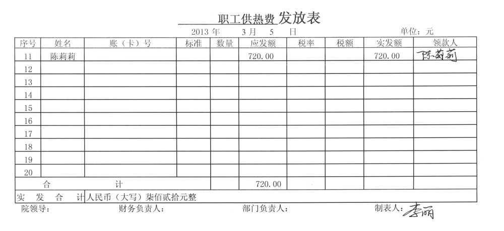 领取劳务及补助费时应填制“黑河学院××发放表”,按栏目要求填写,发放标准按学校标准执行。