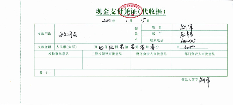 教职工支取办公费、科研费(不超过1000元)、差旅费、学生退学费和宿费等需要报销给职工或学生现金的业务,须使用“现金支付凭证”。附表: